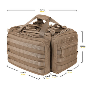 Fabricada con Cordura® resistente al agua de 600 denier, NERIO™ II es un accesorio duradero para todo tipo de clima. El estuche más completo de carga táctica cuenta con un almacenamiento acolchado separado para varios cargadores, organizadores con cremalleras que almacenan eficazmente todos los accesorios y bolsillos laterales. Con una correa acolchada, asas de fácil agarre y un inserto de identificación, nunca fue tan sencillo organizar y cuidar las cosas que más te importan.